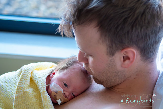 Met 33 weken is kleine Julie geboren. Na een wat lastige start voor dit kleine meisje was het eindelijk tijd voor haar allereerste fotoshoot en mijn allereerste proefreportage voor Stichting Earlybirds. Ik had er ontzettend veel zin in en wat was het bijzonder. Wat een prachtig, dapper, mooi klein meisje en wat is ze bij lieve ouders terecht gekomen! Kleine Julie lag eerst te knuffelen bij papa, is daarna lekker in badje geweest en ze was steeds zo helder en wakker! Ze maakte echt contact en reageerde zo mooi op haar ouders. Na het badje heeft ze ook nog lekker gedronken bij mama en geknuffeld. Wat een dapper meisje!
